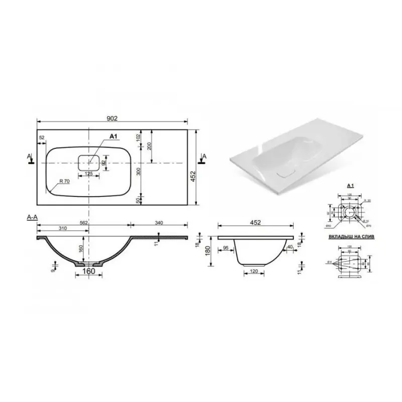 | Форма раковины | Прямоугольная |