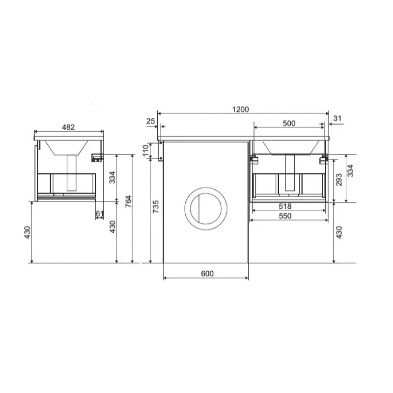 Тумба подвесная Эстет Dallas Luxe под стиральную машину 120 с раковиной Белый ФР-00001926