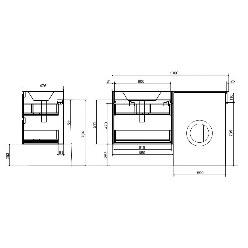 Тумба подвесная Эстет Dallas Luxe под стиральную машину 130 с раковиной Белый ФР-00002222