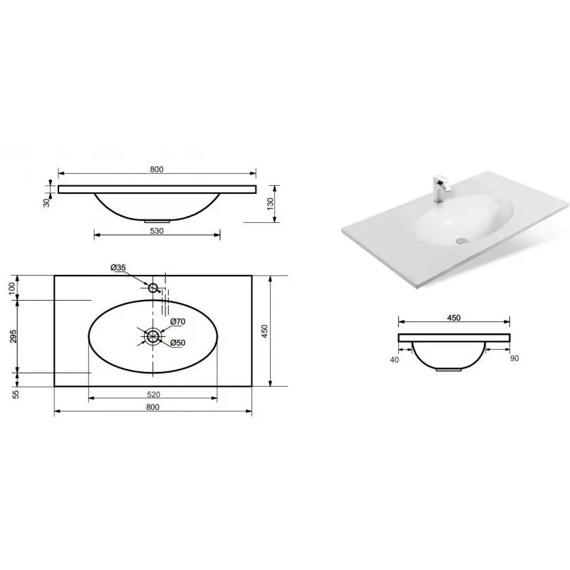 | Форма раковины | Прямоугольная |