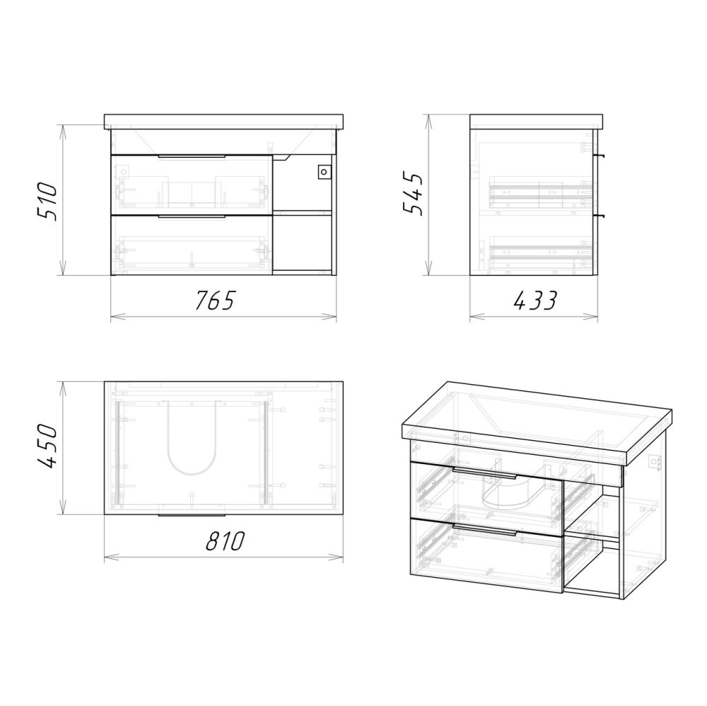 Тумба подвесная Grossman Форта 80 Дуб темный 1080042