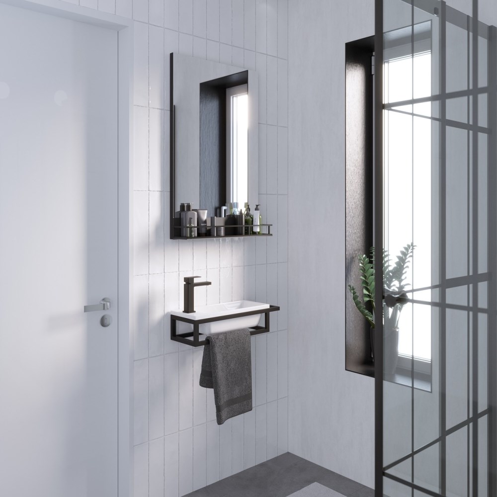 Тумба подвесная Grossman Метрис 60 с правым полотенцедержателем Черный матовый 105002