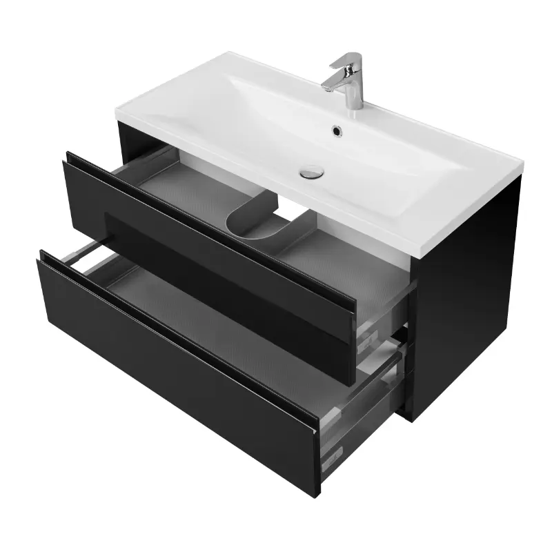 Тумба подвесная с раковиной Aquaton Римини 99,7х44,5 черный глянец 1A2346K3RN950