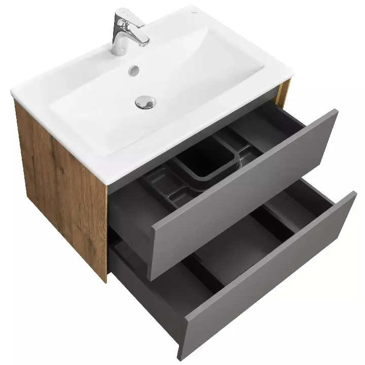 Тумба подвесная с раковиной Aquaton Сохо 58,8х45,5 графит софт/дуб веллингтон 1A2580K1AJA00