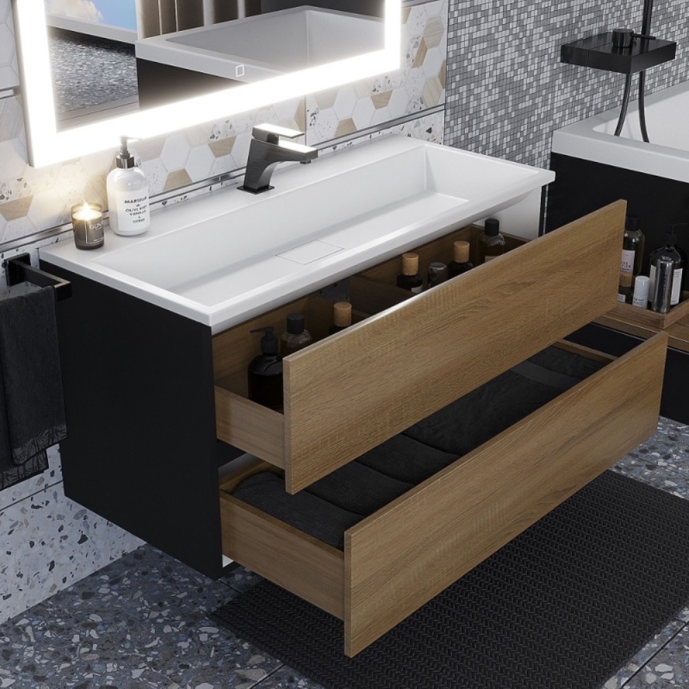 Тумба подвесная Uperwood Barsa 100 с раковиной Черный / Дуб сонома 293020544