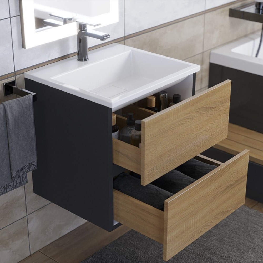 Тумба подвесная Uperwood Barsa 50 с раковиной Черный / Дуб сонома 29830205647