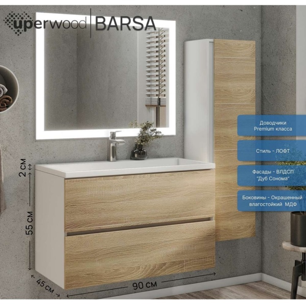 Тумба подвесная Uperwood Barsa 90 Белый / Дуб сонома 2937205251
