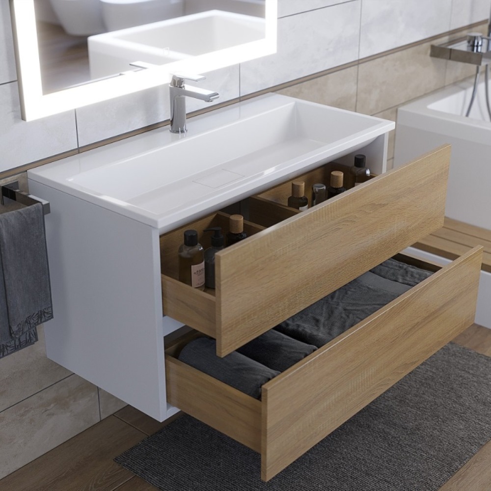 Тумба подвесная Uperwood Barsa 90 с раковиной Белый / Дуб сонома 29830205648
