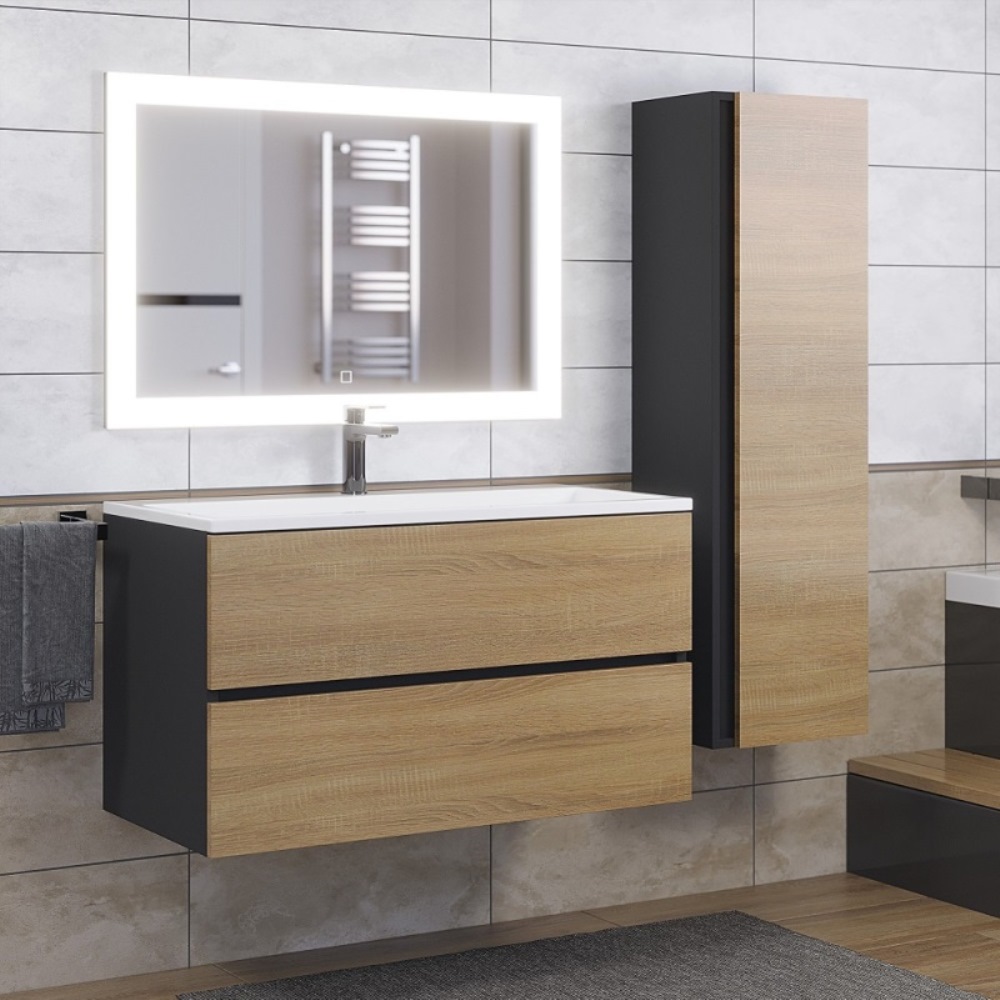 Тумба подвесная Uperwood Barsa 90 с раковиной Черный / Дуб сонома 29830205649