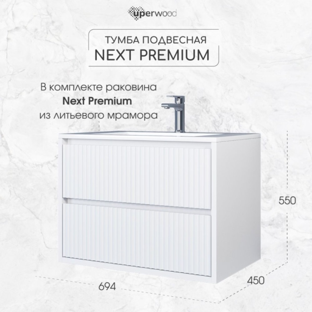 Тумба подвесная Uperwood Next Premium 69,4 с раковиной Белый матовый 3930205165