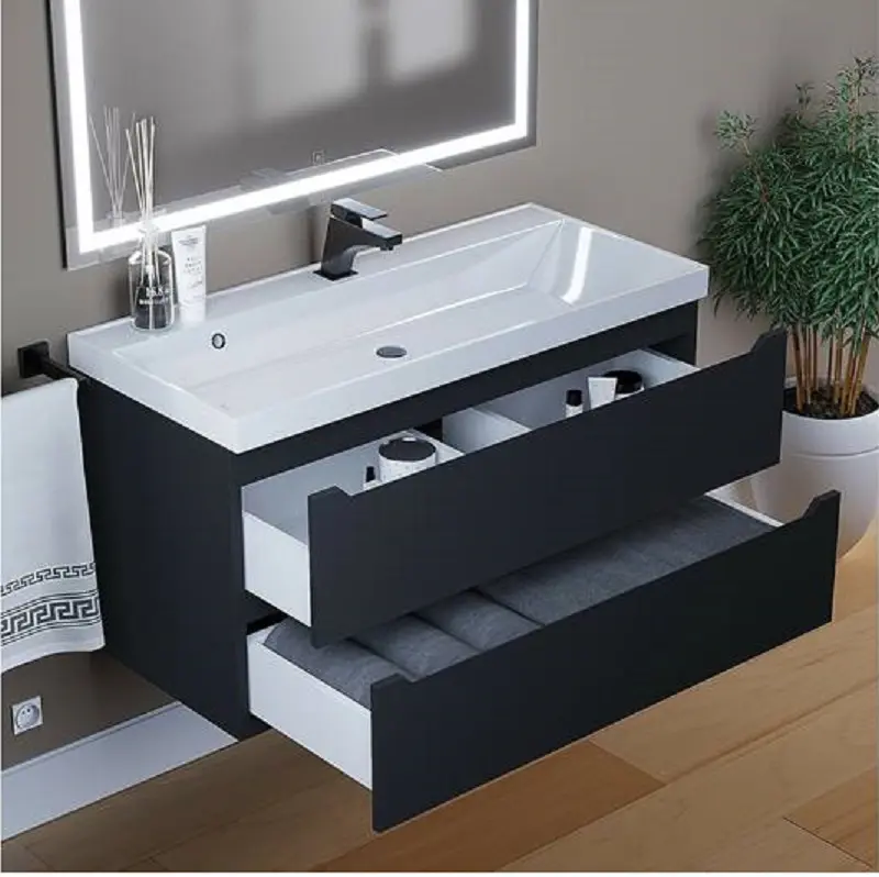Тумба подвесная Uperwood Tanos 100 + раковина Classic Черный