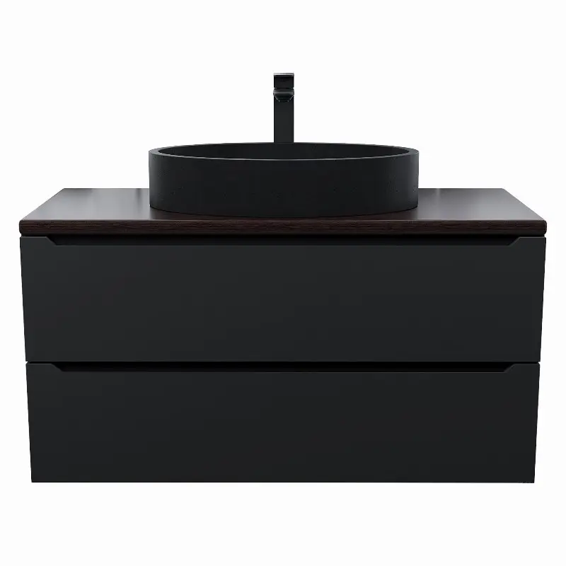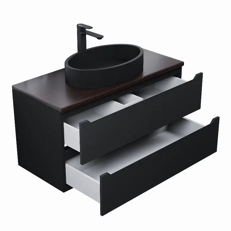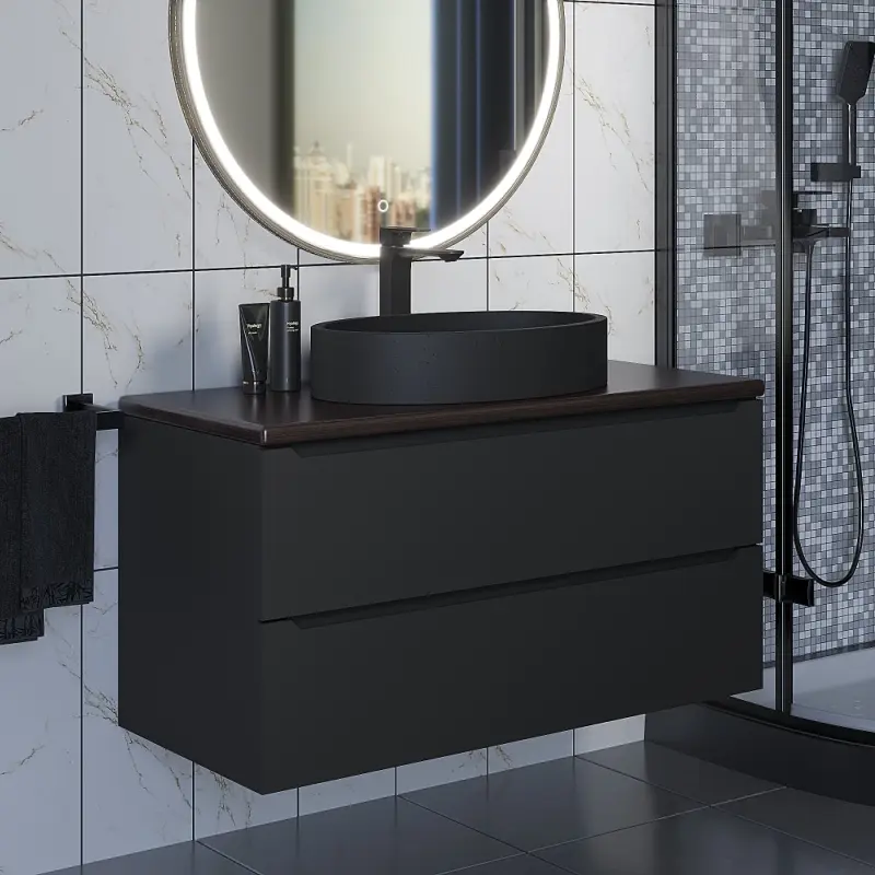 Тумба подвесная Uperwood Tanos 100 + раковина Rome Черный / Бук темный