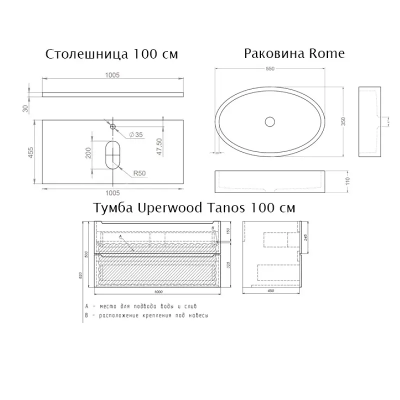 Тумба подвесная Uperwood Tanos идеальное дополнение ванной комнаты в современном стиле. Модель имеет прямоугольную форму и размер 100х45 см. В коллекции представлены: зеркала, шкафчики и пеналы. Раковина в комплекте.