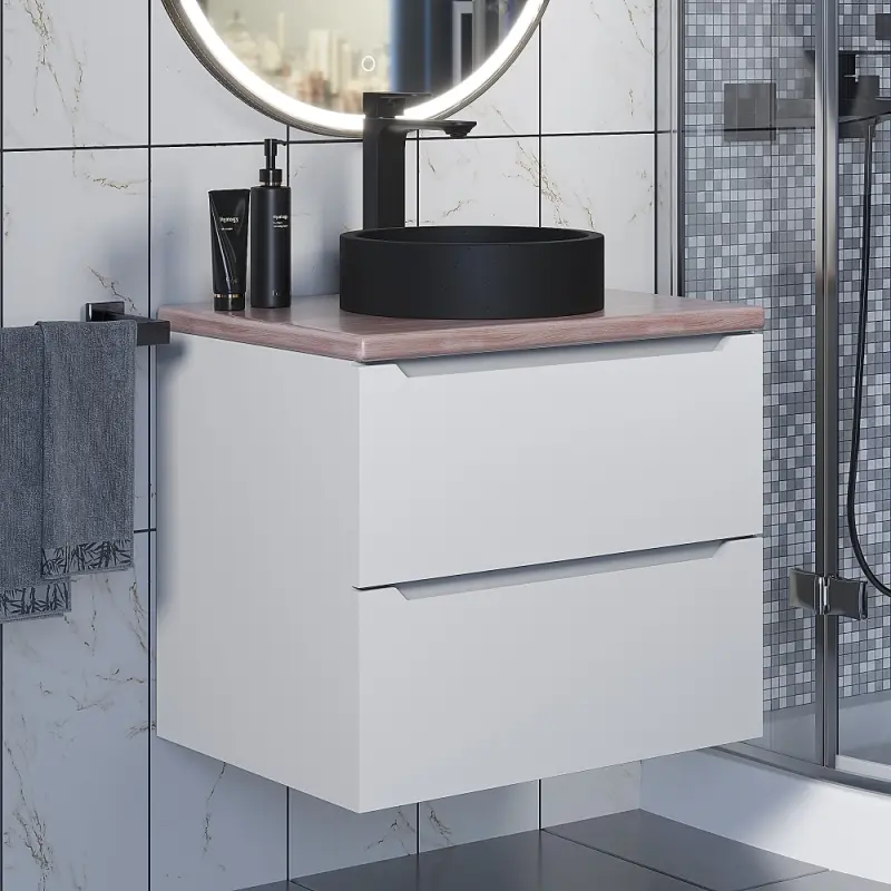 Тумба подвесная Uperwood Tanos 60 + раковина Round Белый / Бук светлый 2910210411