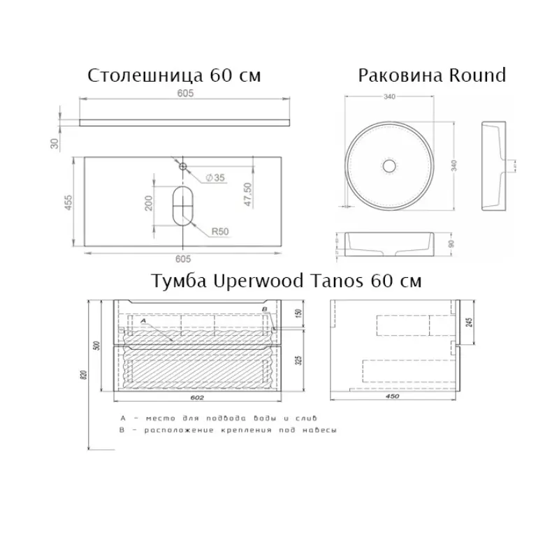 Тумба подвесная Uperwood из коллекции Tanos идеальное дополнение ванной комнаты в современном стиле. Модель имеет прямоугольную форму и размер 60х45 см. В коллекции представлены: зеркала, шкафчики и пеналы. В комплекте раковина Round.