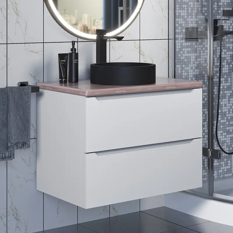 Тумба подвесная Uperwood Tanos 70 + раковина Round Белый / Бук светлый 2910210415