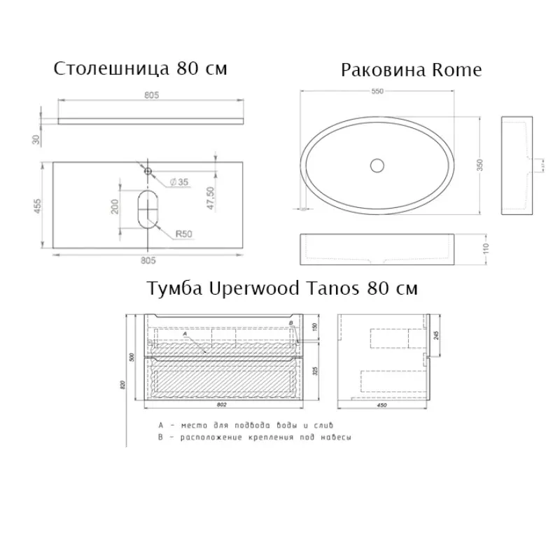 | Тип тумбы | Под накладную раковину |