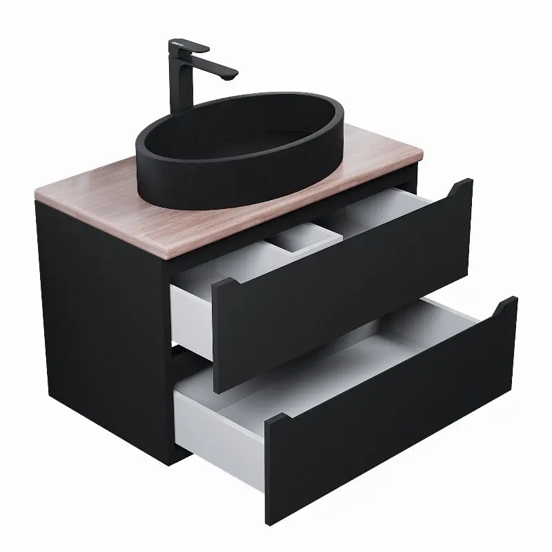 Тумба подвесная Uperwood Tanos 80,2 + раковина Rome Черный / Бук светлый