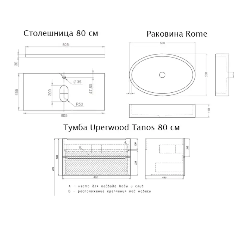 Тумба подвесная Uperwood Tanos идеальное дополнение ванной комнаты в современном стиле. Модель имеет прямоугольную форму и размер 80,2х45 см. В коллекции представлены: зеркала, шкафчики и пеналы. Раковина в комплекте.