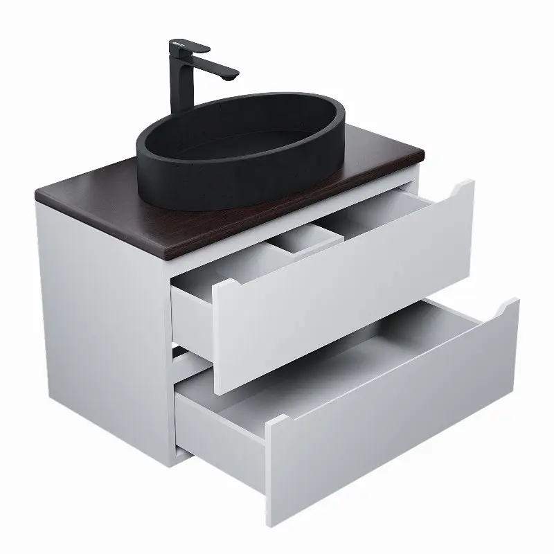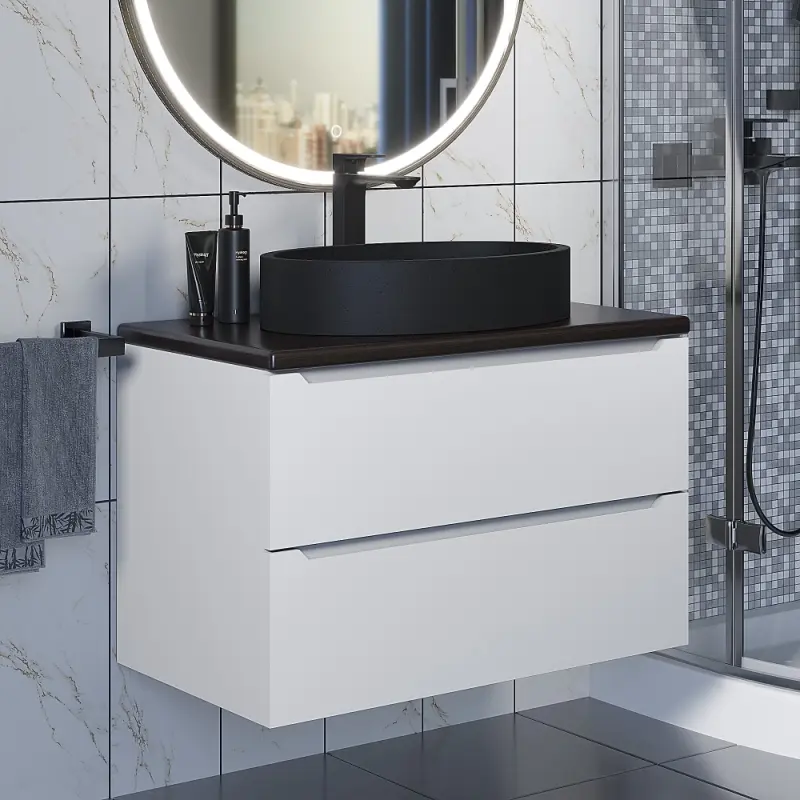 Тумба подвесная Uperwood Tanos 80,2 + раковина Rome Черный / Бук темный