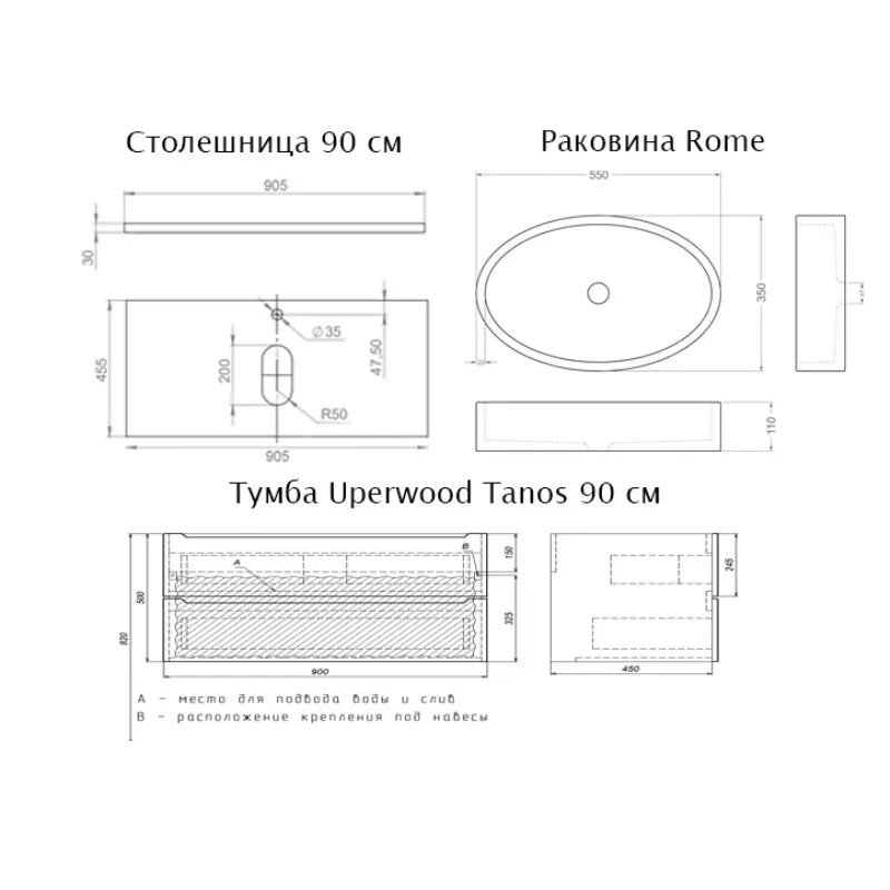 Тумба подвесная Uperwood Tanos идеальное дополнение ванной комнаты в современном стиле. Модель имеет прямоугольную форму и размер 90х45 см. В коллекции представлены: зеркала, шкафчики и пеналы. Раковина в комплекте.