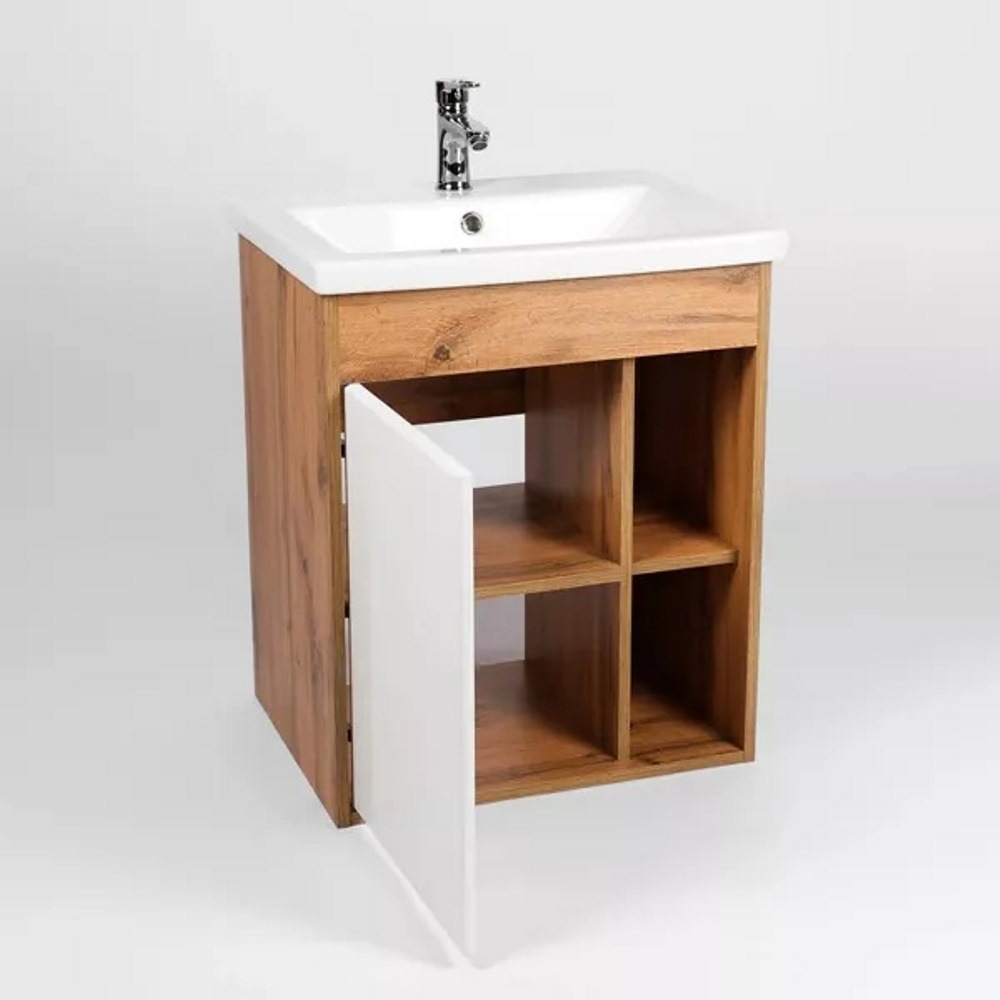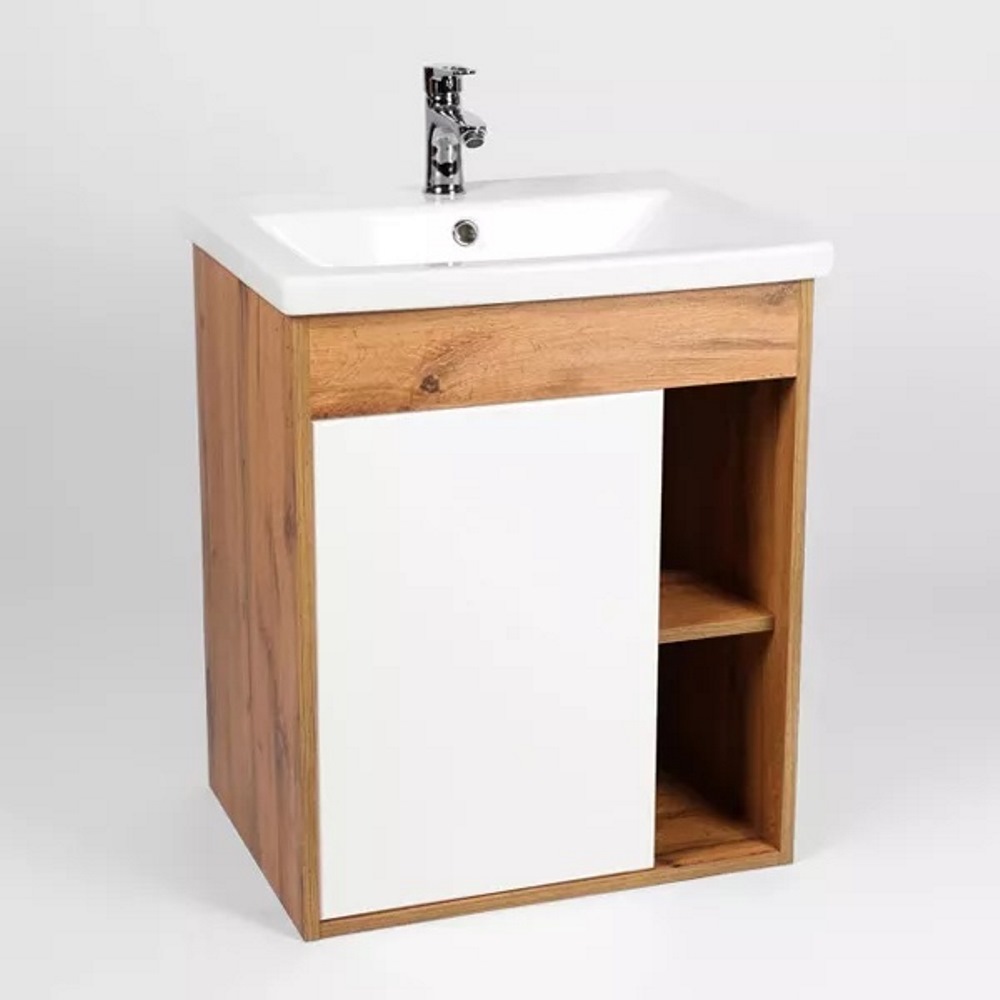 Тумба подвесная Viant Бостон 50 с раковиной Como Белый / Дуб Вотан VBOS50CO-T1STP