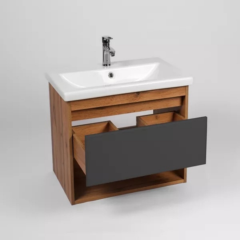 Тумба подвесная Viant Бостон 60 с раковиной Como Дуб вотан / Графит VBOS60COG-T1YP