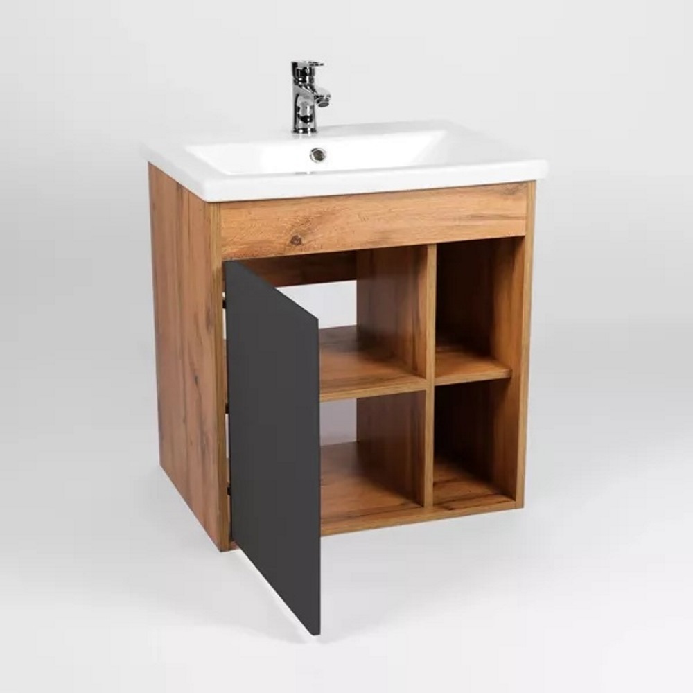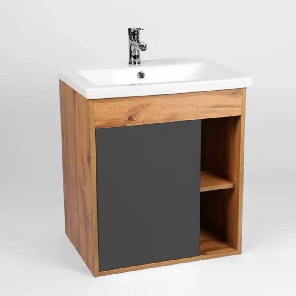 Тумба подвесная Viant Бостон 70 с раковиной Como Дуб вотан / Графит VBOS70COG-T1STP