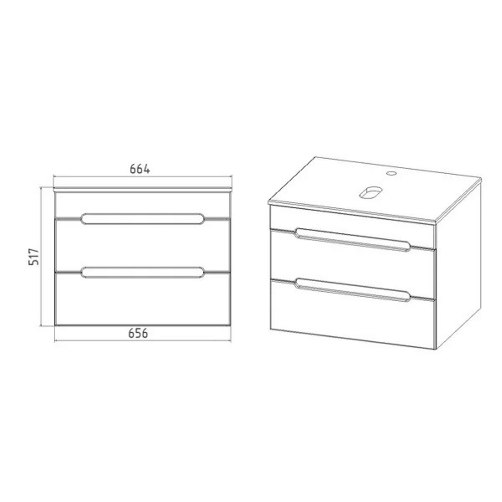 Тумба подвесная Viant Марсель 66,4 с раковиной Moduo Белый VMAR66N-T2YP