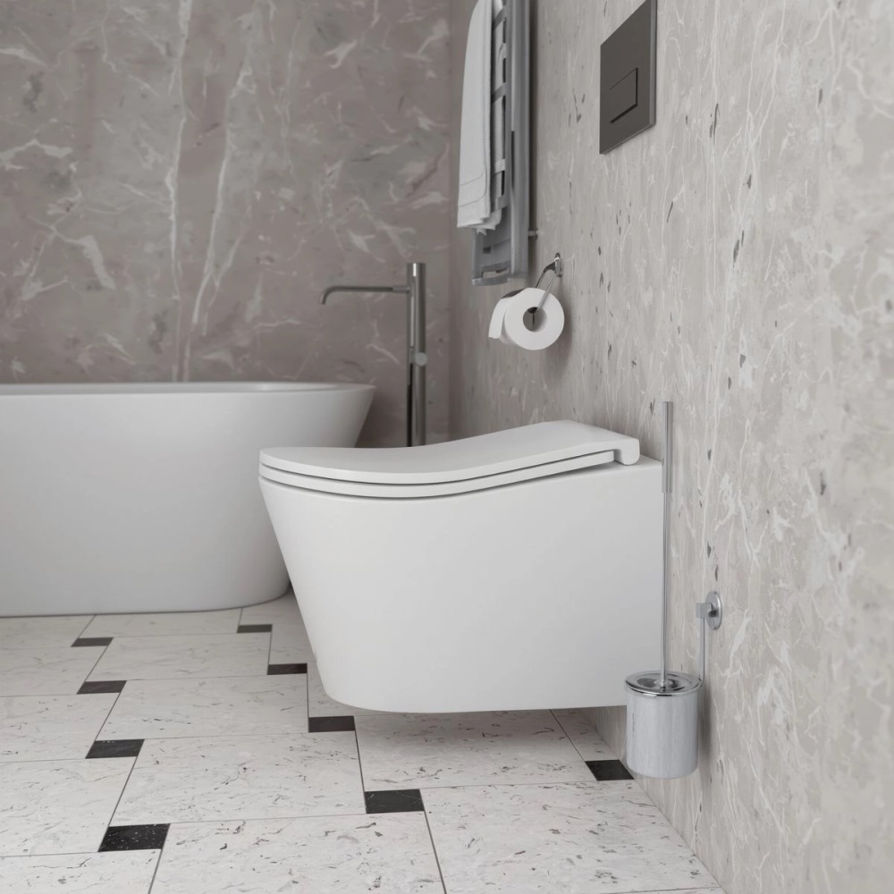 Унитаз подвесной D&K Bamberg предназначен для установки с системой инсталляции скрытого монтажа. Крышка-сиденье в комплекте.