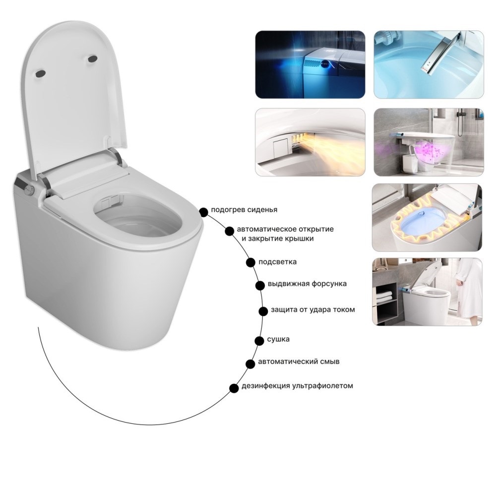 Унитаз подвесной Grossman Smart с функцией биде предназначен для установки с системой инсталляции срытого монтажа. Чаша унитаза имеет овальную форму и изготовлена из санфаянса.