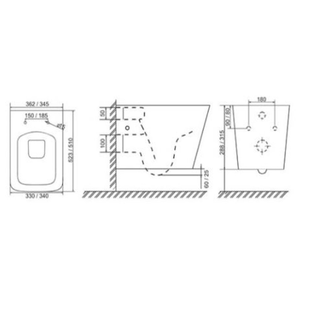 Унитаз подвесной Mirsant Cube предназначен для установки с системой инсталляции скрытого монтажа. Крышка-сиденье в комплекте.