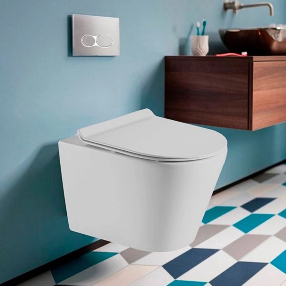 Унитаз подвесной Mirsant Torr предназначен для установки с системой инсталляции скрытого монтажа. Крышка-сиденье в комплекте.