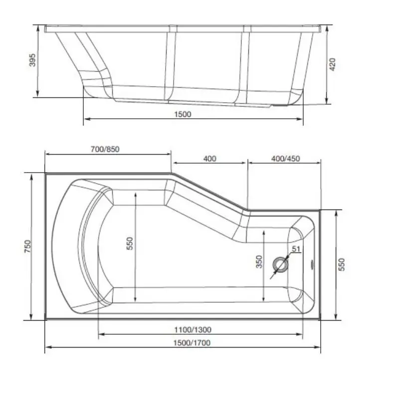 Ванна акриловая 1MarKa Convey 170х75 левая Белый 01кон1775л