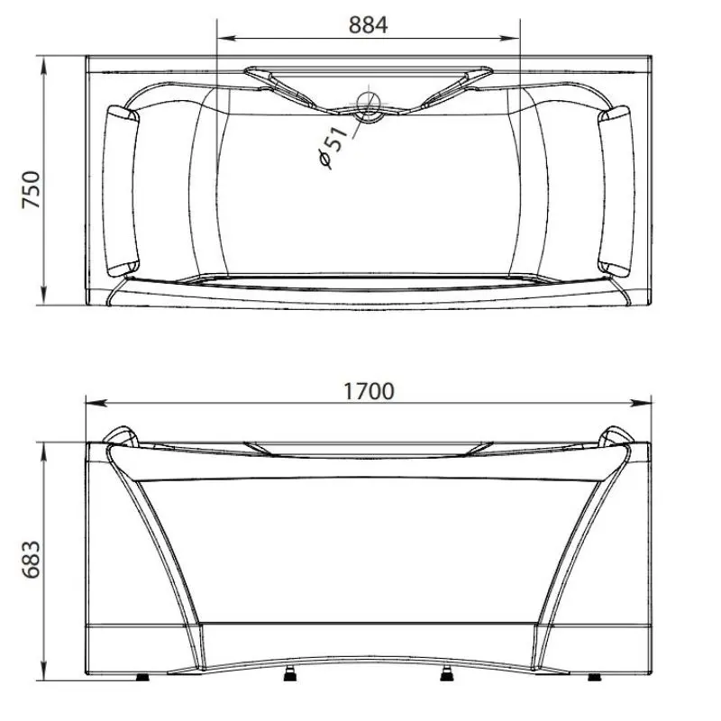 Ванна акриловая 1MarKa Dolce Vita 170х75 Белый 01дов1775