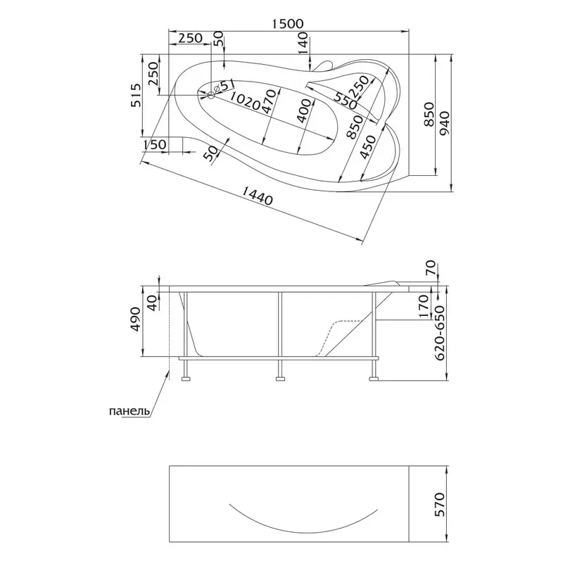 Ванна акриловая 1MarKa Gracia 150х90 левая Белый 01гр1590л