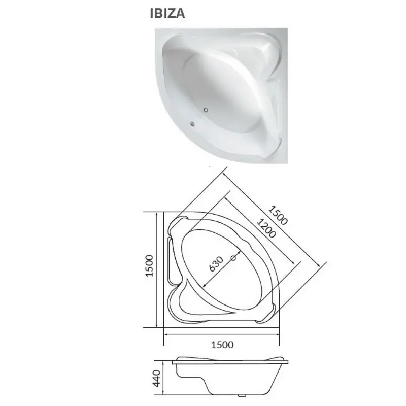 Ванна акриловая 1MarKa Ibiza 150х150 Белый 01иб1515