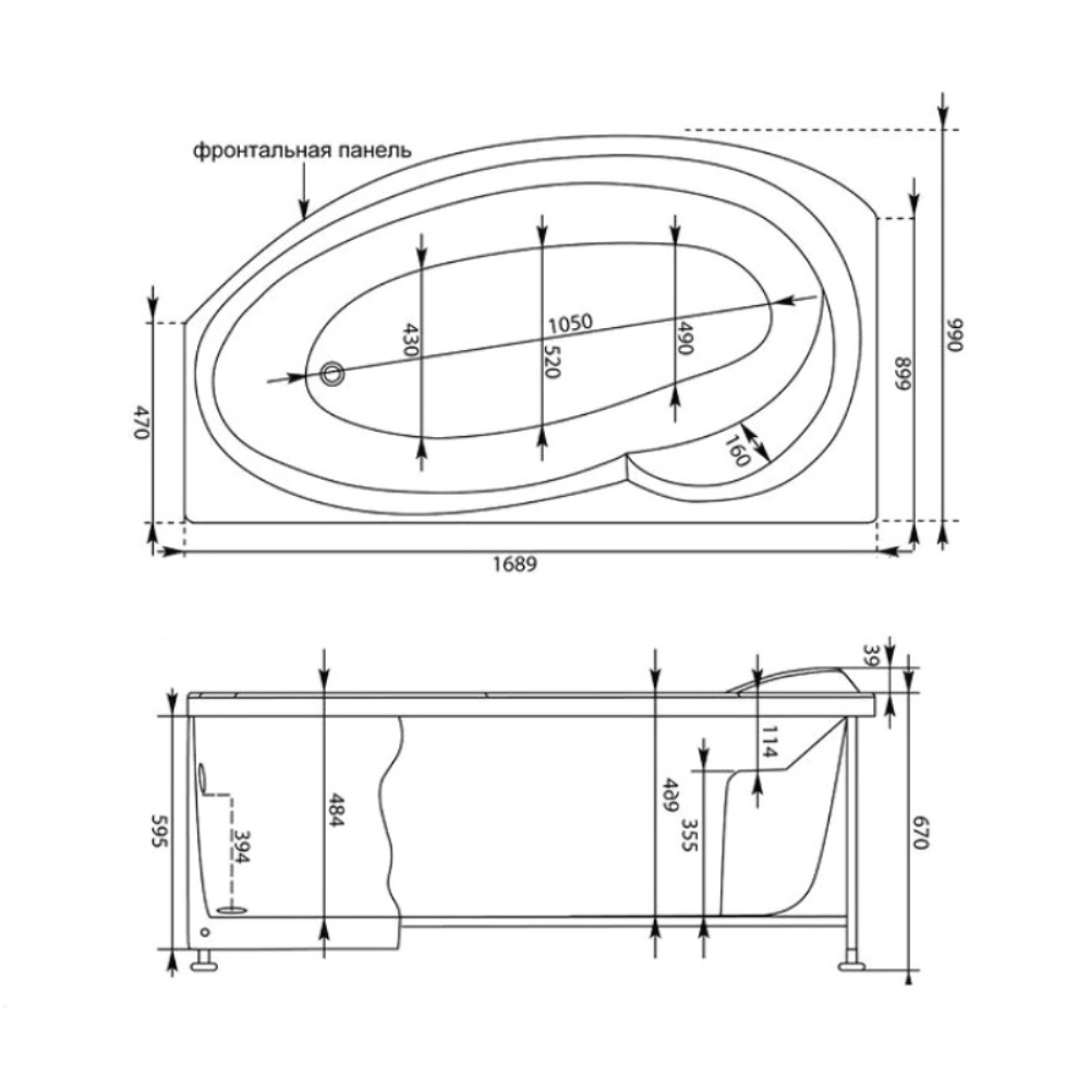 Ванна акриловая Aquanet Jersey имеет размер 170х100 см. Асимметричная форма. Дополнительно комплектуется каркасом, смесителем, сточным комплектом, передней панелью.