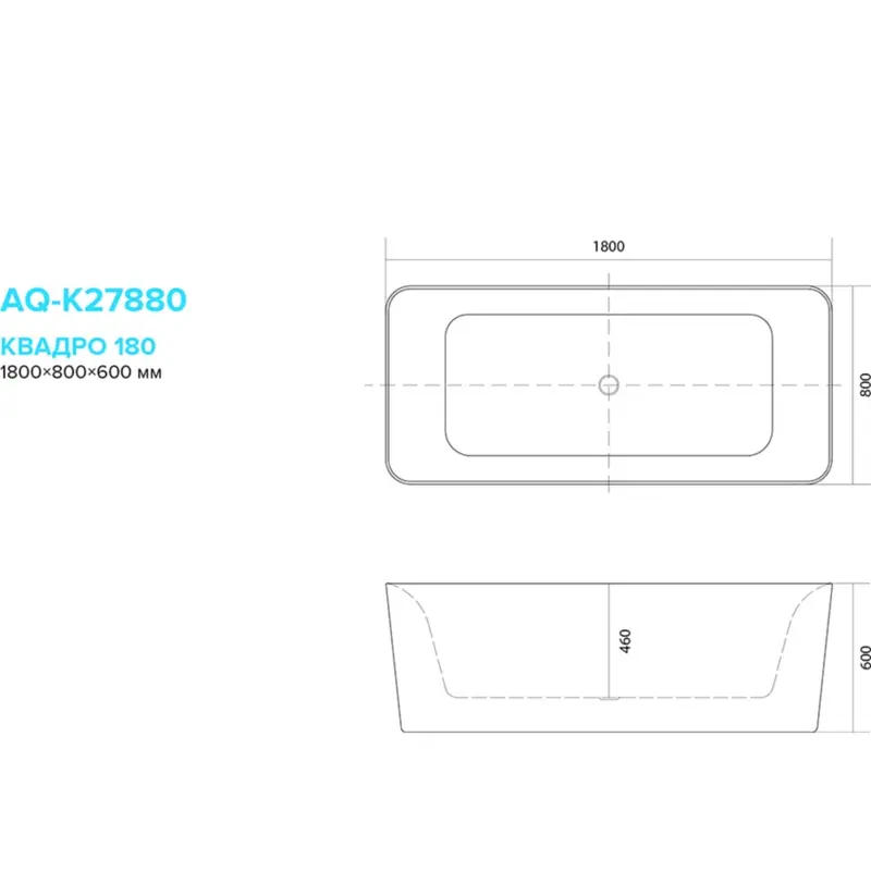 Ванна акриловая Aquatek из коллекции Квадро имеет размер 180х80 см. Форма — прямоугольная. Страна изготовитель — Россия. В комплекте слив и ножки.