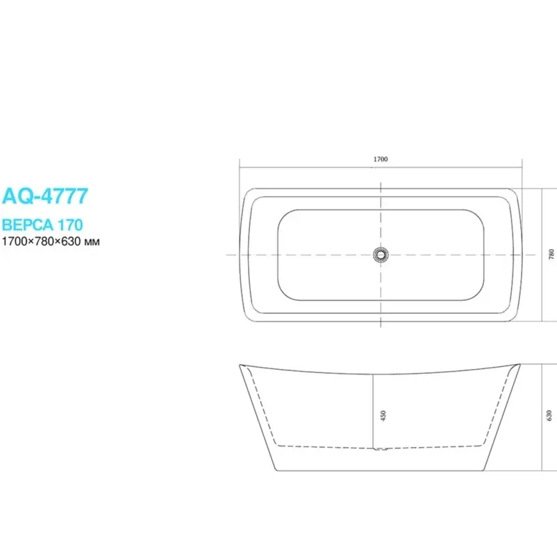 Ванна акриловая Aquatek из коллекции Верса имеет размер 170х78 см. Форма — прямоугольная. Страна изготовитель — Россия. В комплекте слив и ножки.