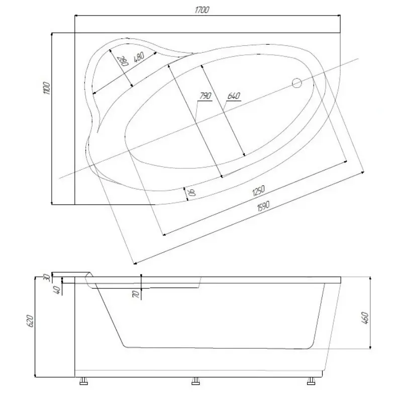 Ванна акриловая Azario Laura имеет размер 170х110 см. Форма — асимметричная. Страна изготовитель — Китай. Дополнительно комплектуется каркасом, смесителем, сточным комплектом, передней панелью.