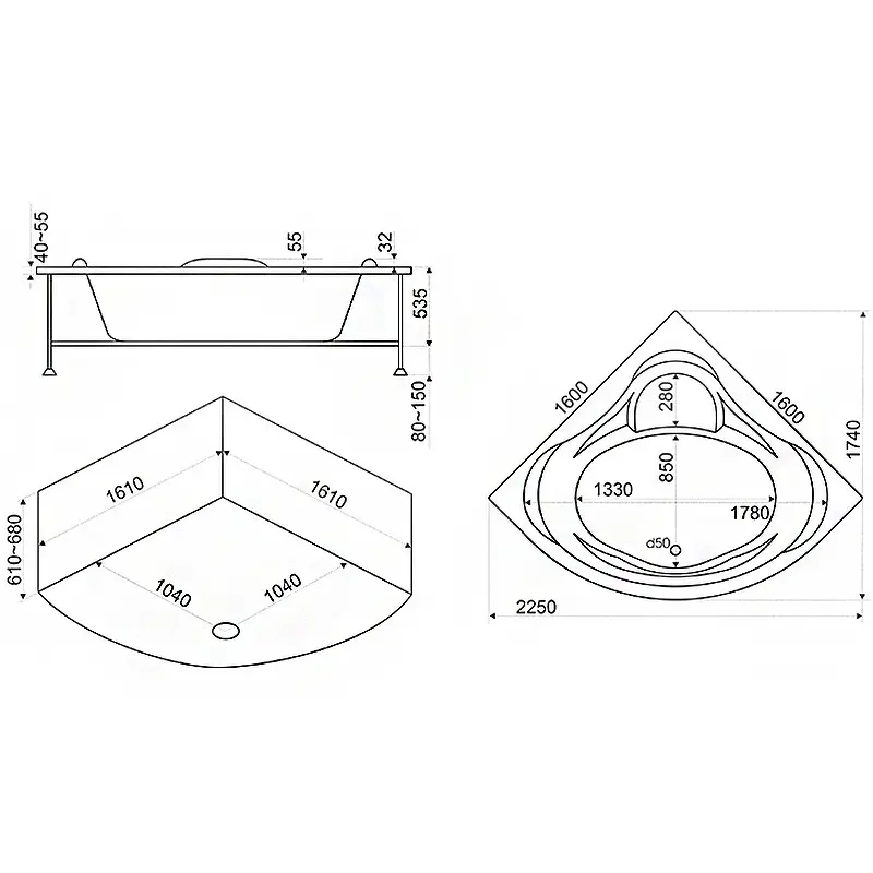 Будьте первым, кто оставил отзыв на “Ванна акриловая BAS Мега 160х160 на каркасе Белый В 00024”