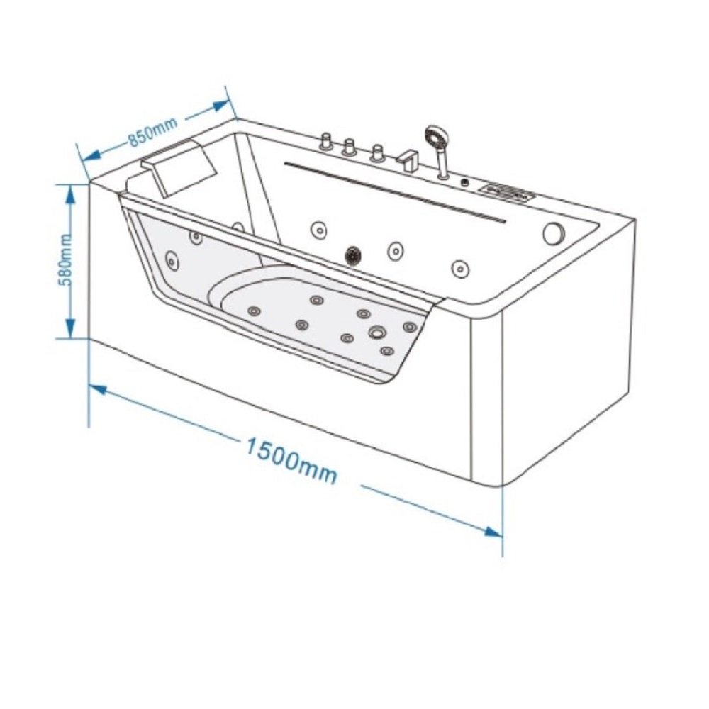 Ванна акриловая Grossman 150х85 гидромассажная со смесителем Белый глянцевый GR-15085-1