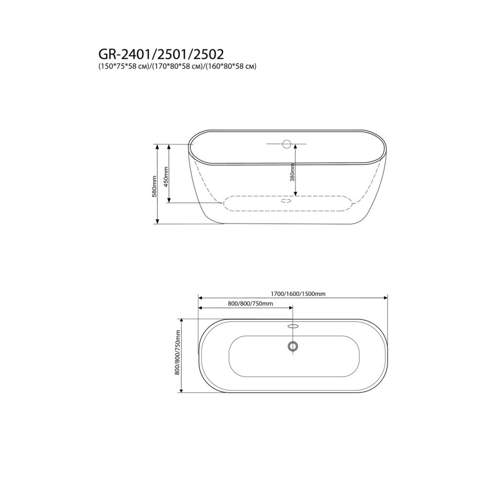 Ванна акриловая Grossman Classic 160х80 Белый матовый GR-2502M