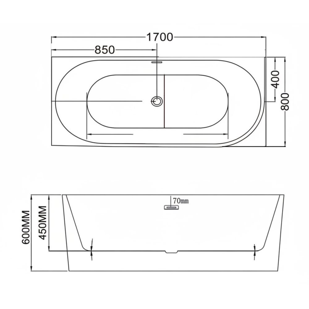 Ванна акриловая Grossman Cristal 170х80 правая Белый глянцевый GR-2204R