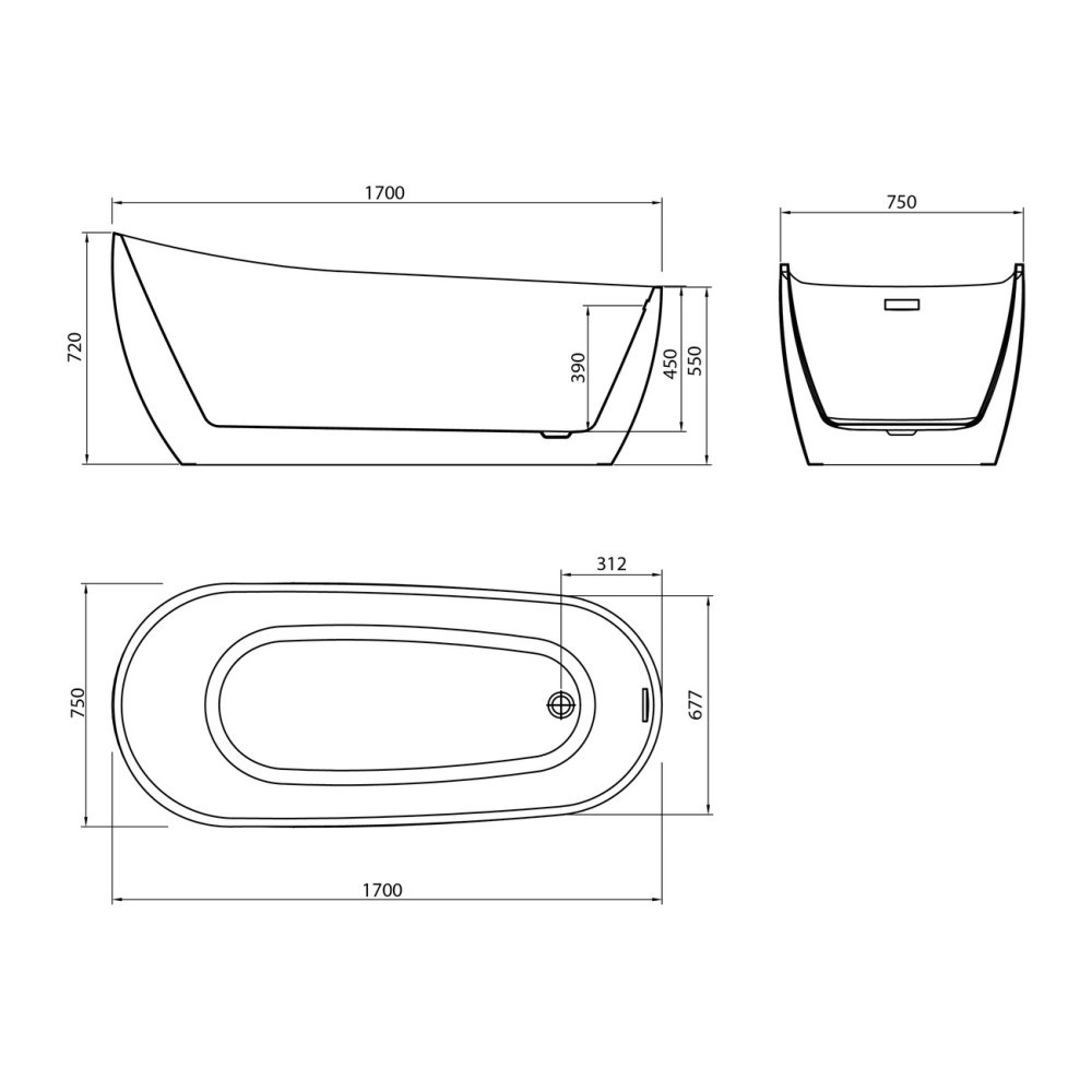 Ванна акриловая Grossman из коллекции Galaxy имеет размер 170х75 см. Овальная форма. Дополнительно комплектуется смесителем.