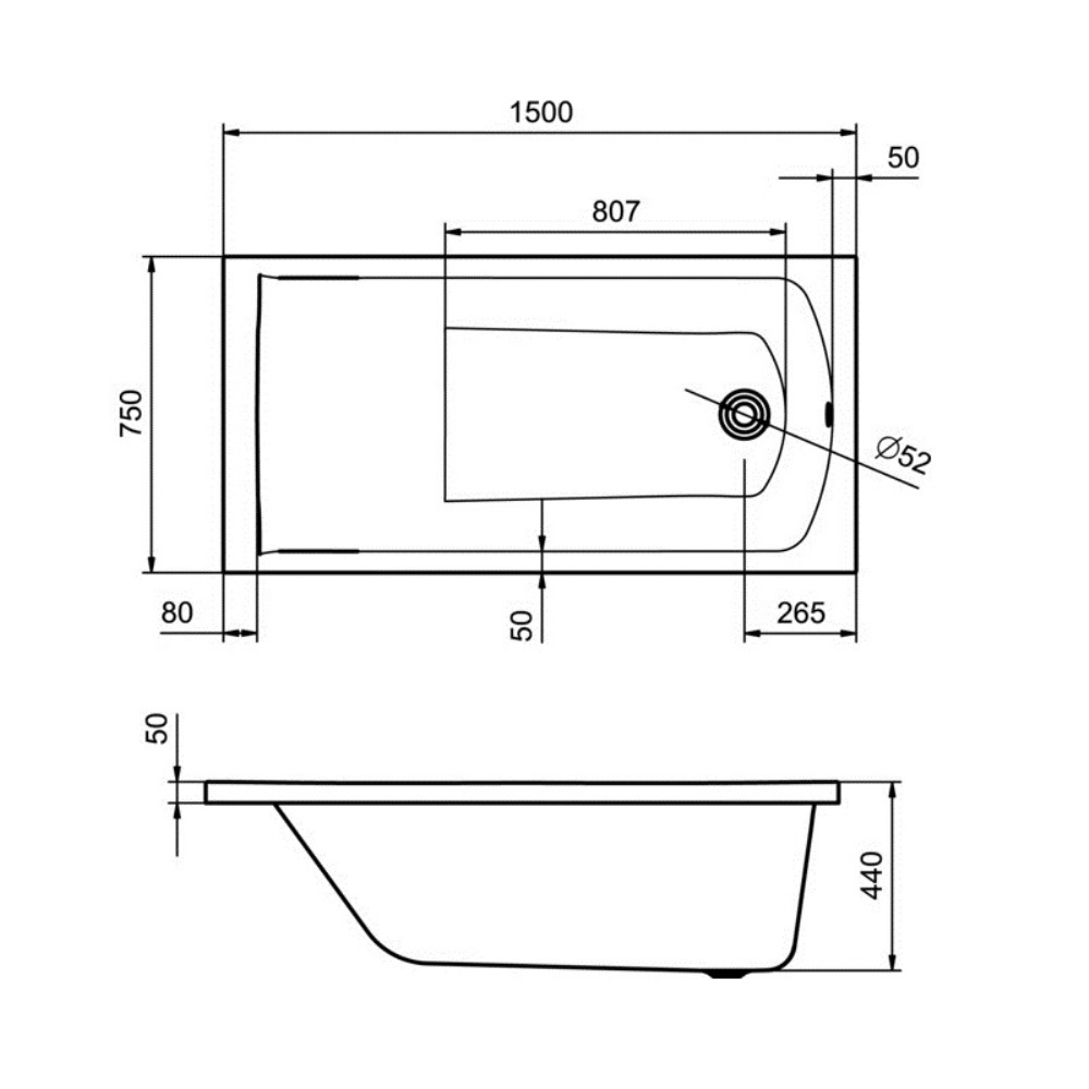 Ванна акриловая Santek Фиджи 150х75 Белый глянцевый 1.WH50.1.598