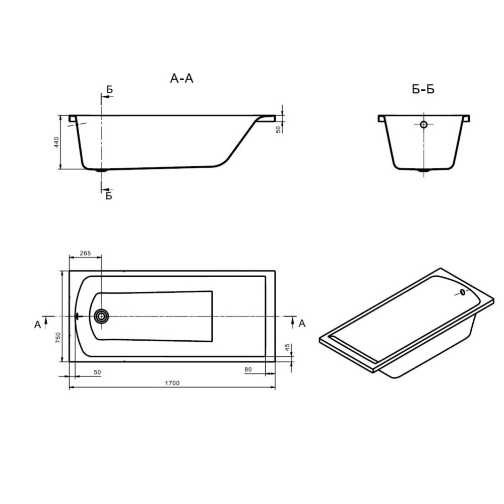Ванна акриловая Santek Фиджи 170х75 Белый глянцевый 1.WH50.1.596