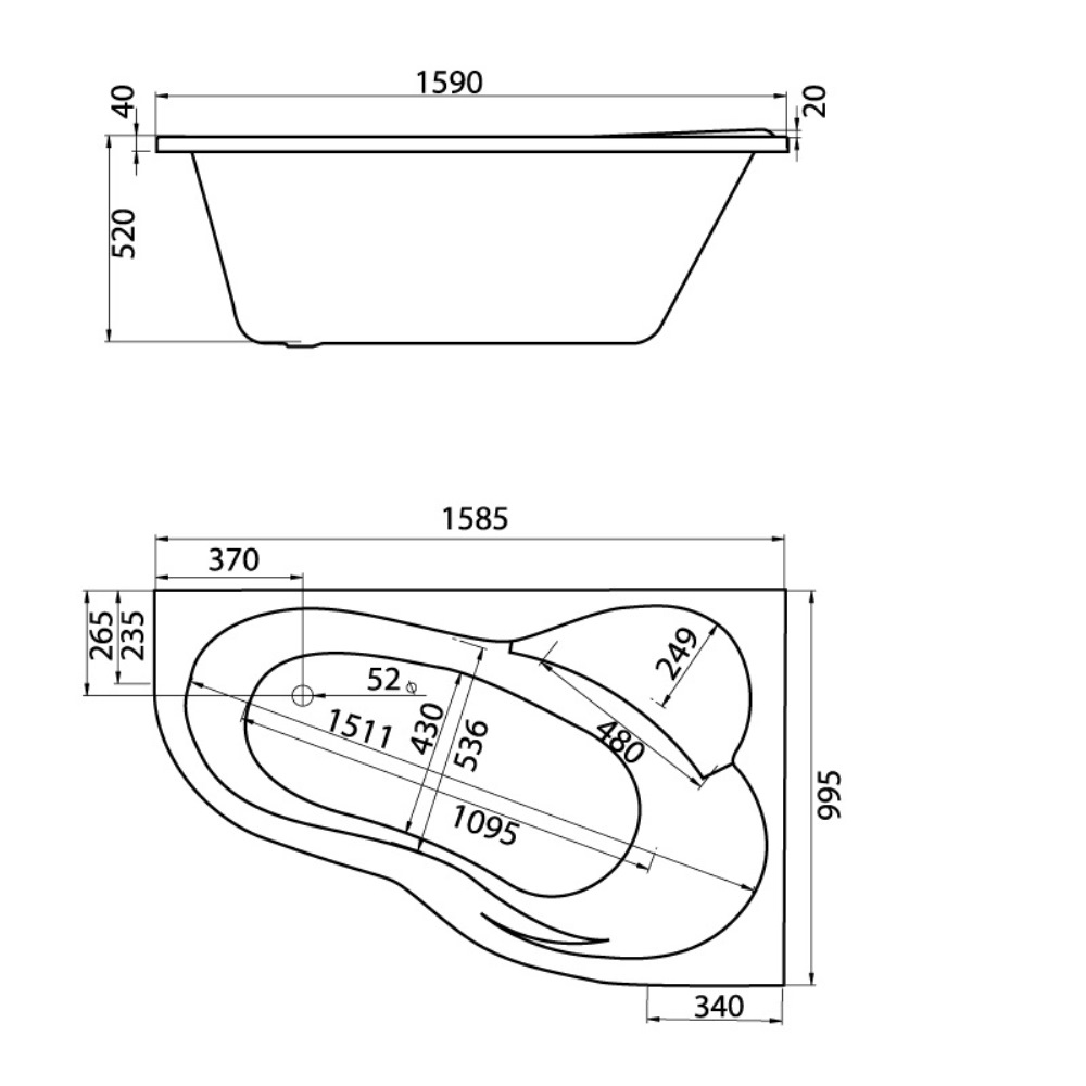 Ванна акриловая Santek Ибица XL 159х100 правая Белый глянцевый 1.WH11.2.037