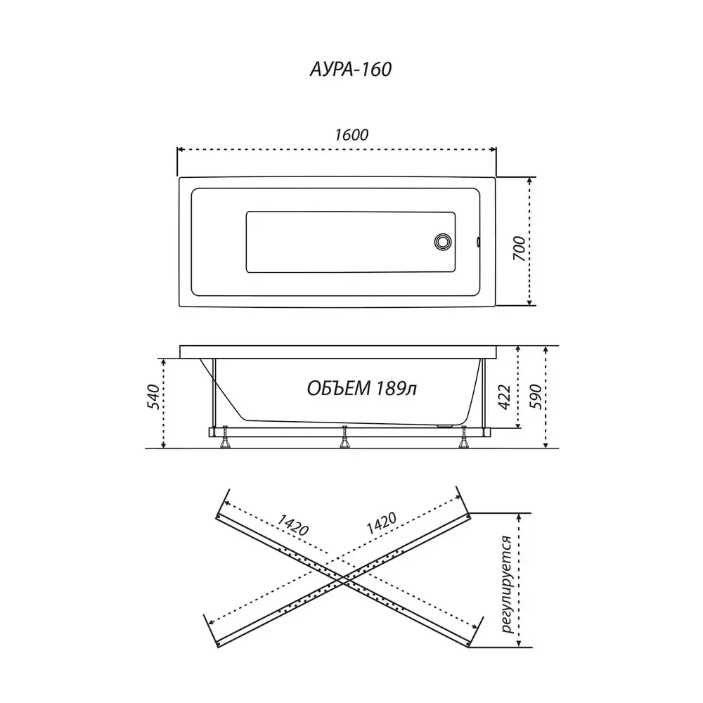 Ванна акриловая Triton Аура 160х70